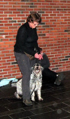 Da jeg jo ikke rent praktisk kunne passe det ind med at have mine egne hunde med, lånte jeg 2 demo-hunde. Søndag var det CKCS'en Henrik der stod for og lørdag var det stakkels kort-pelsede Pricilla (Staffordshire terrier), der måtte med ud i kulden.
